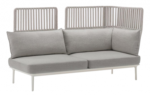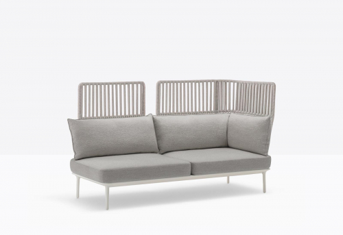 Reva Cocoon - это система сидений для отдыха на открытом воздухе, обеспечивающая максимальную свободу использования, легко адаптируемая и конфигурируемая различными способами для обеспечения максимального комфорта и персонализации. Отличительной особенностью коллекции являются яркие спинки из нержавеющей стали, переплетенные веревкой из устойчивого к атмосферным воздействиям полипропилена, что придает сиденьям по-настоящему естественный вид. Элемент шнура, на 100% изготовленный в Италии опытными мастерами, обеспечивает жизненно важное уединение, сохраняя при этом предмет мебели воздушным и ярким благодаря более толстому плетению в нижней части и более свободному в верхней части. Правый или левый угловой модуль с высокими спинками, образованными двойной кривизной, охватывающей раму по периметру из экструдированного алюминия, на концах которой стоят четыре конические ножки из литого под давлением алюминия. Ощущение обволакивания усиливается благодаря мягким подушкам, лежащим на конструкции: подушки сидений изготовлены из пенополиуретана, а подушки спинки - из полиэстера, обтянуты полностью водонепроницаемой подкладкой и обитые тканью для активного отдыха.