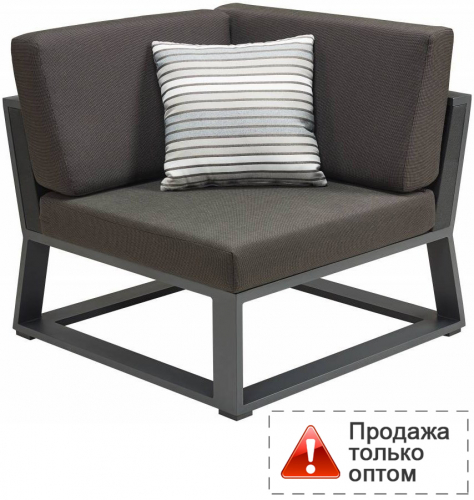 Для подушек выбран олефин, материал на основе полипропилена, легкий, с низкой степенью влагопоглощения и быстросохнущим. Превосходная устойчивость к солнечному свету и плесени, и, прежде всего, материал, который не выцветает. Идеально подходит для этой коллекции, где преобладает черный цвет: от черного цвета обивки до черного цвета алюминиевой конструкции с порошковым покрытием, которые, в отличие от искусного использования тикового дерева, создают ощущение сильной динамики.