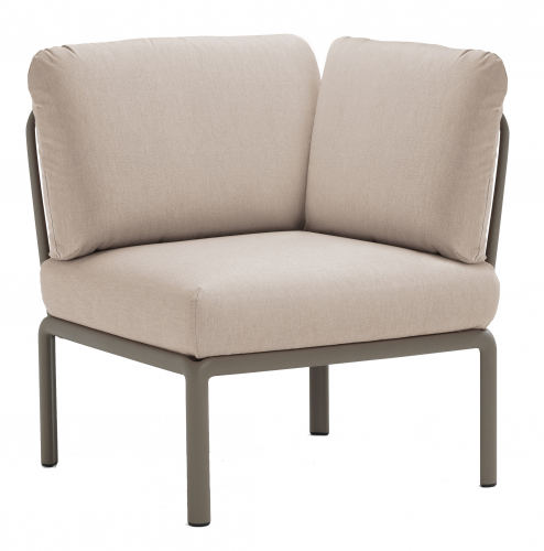 Модули Komodo выполнены из стеклопластика, имеют складные спинки и боковины, съемные подушки, благодаря чему можно составить диван любой длины, превратить отдельные модули в столики или пуфы.