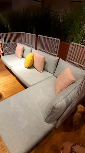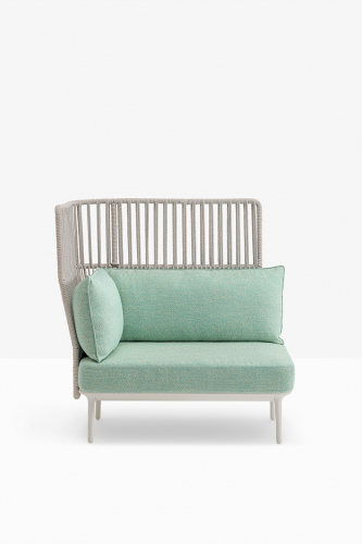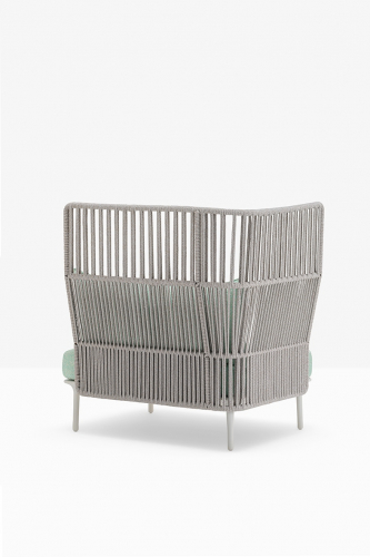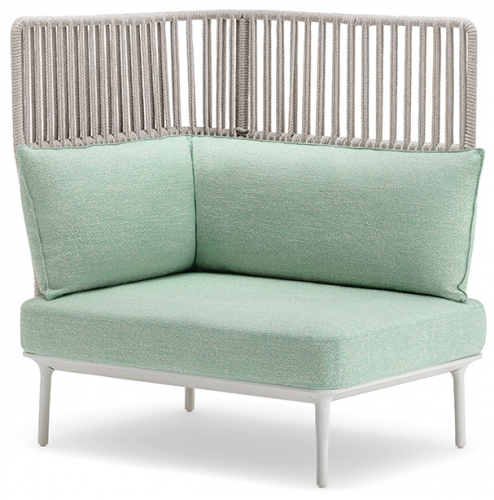 Reva Cocoon - это система сидений для отдыха на открытом воздухе, обеспечивающая максимальную свободу использования, легко адаптируемая и конфигурируемая различными способами для обеспечения максимального комфорта и персонализации. Отличительной особенностью коллекции являются яркие спинки из нержавеющей стали, переплетенные веревкой из устойчивого к атмосферным воздействиям полипропилена, что придает сиденьям по-настоящему естественный вид. Элемент шнура, на 100% изготовленный в Италии опытными мастерами, обеспечивает жизненно важное уединение, сохраняя при этом предмет мебели воздушным и ярким благодаря более толстому плетению в нижней части и более свободному в верхней части. Правый или левый угловой модуль с высокими спинками, образованными двойной кривизной, охватывающей раму по периметру из экструдированного алюминия, на концах которой стоят четыре конические ножки из литого под давлением алюминия. Ощущение обволакивания усиливается благодаря мягким подушкам, лежащим на конструкции: подушки сидений изготовлены из пенополиуретана, а подушки спинки - из полиэстера, обтянуты полностью водонепроницаемой подкладкой и обитые тканью для активного отдыха.