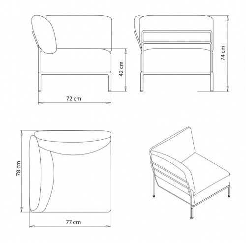 Ari - это «программа» сидений, состоящая из тонкой металлической стержневой конструкции, предназначенной для размещения больших мягких подушек, обеспечивающих комфорт и расслабление. Это основа всей системы модулей: угловых линейных, торцевых, кресла, модулей-пуфов и журнального столика.