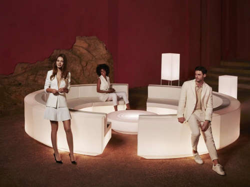 Vela - это обширная коллекция уличной мебели, направленная на то, чтобы предложить комфорт и качество, не теряя при этом оригинальных особенностей. Эта модульная коллекция с элементарной призматической геометрией основывает свою особенность на балансе пропорций. Элементы могут объединяться между собой для интеграции в любое пространство. Их точные объемы создают иллюзию парения в нескольких сантиметрах от пола, а когда они освещаются, то превращаются в плавающие архитектуры.