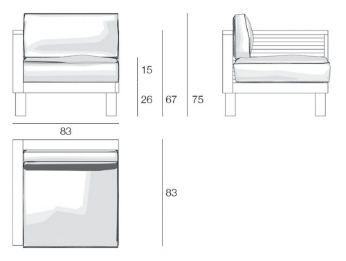 Комфорт и дизайн - это особенности коллекции Saint Tropez. Угловой элемент модульной системы можно использовать в качестве торцевой части дивана с одним или несколькими центральными элементами, или два угловых элемента можно разместить рядом, чтобы создать двухместный диван; или даже один деревянный уголок можно использовать как отдельный элемент, чтобы охарактеризовать площадь Вашей гостиной на открытом воздухе. Линия квадратная и строгая. Безупречная отделка и тщательная сборка будут соответствовать комфорту Вашего пространства для отдыха. Вы можете создать диваны различной формы, используя модульные элементы этой коллекции.