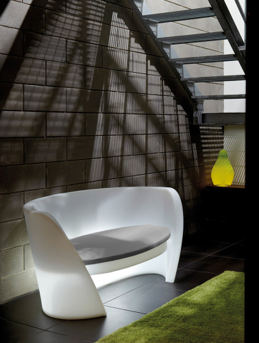 Karim Rashid - громокое имя в мире дизайна, создает Rap - диван с чистыми и обволокавающими линиями. В соответствии с философией великого канадского дизайнера Rap представляет собой двухместный диван, который легко успокаивает тех, кто занимает место в нём и облегчает их взаимоотношения.