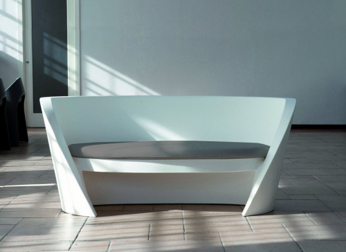 Karim Rashid - громкое имя в мире дизайна, создает Rap - диван с чистыми и обволокавающими линиями. В соответствии с философией великого канадского дизайнера Rap представляет собой двухместный диван, который легко успокаивает тех, кто занимает место в нём и облегчает их взаимоотношения. Rap фактически укутывает своей извилистой спиной, создавая изделие, полное комфорта, которое дает ощущение защиты с первого момента. Изготовленный из полиэтилена с технологией ротационного формования, Rap может комплектоваться мягкой подушкой, которая делает сиденье еще более комфортным.