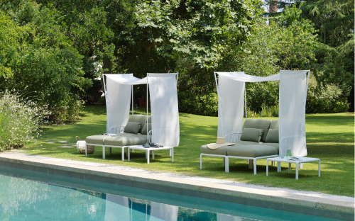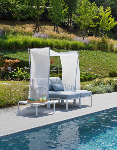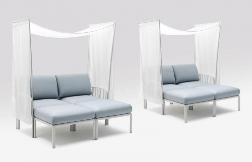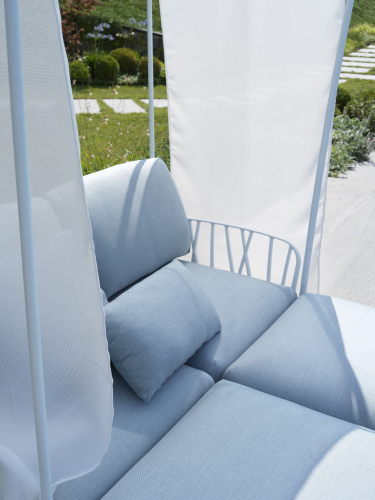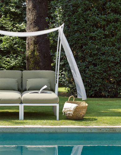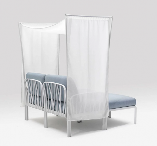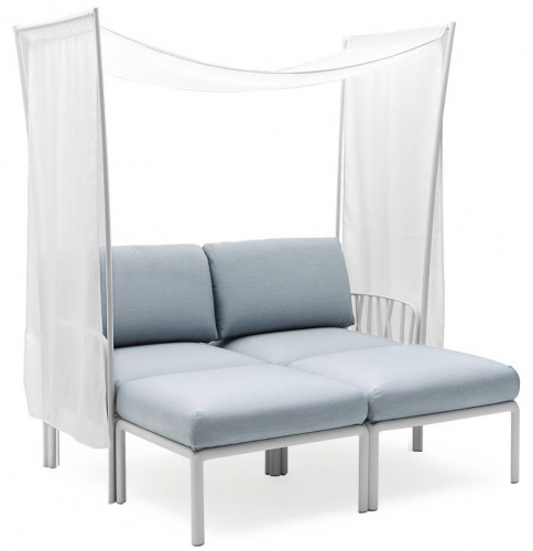 Модульная коллекция Komodo дополняется новым элементом Ombra, так что вы можете наслаждаться удовольствием от пребывания на открытом воздухе и общения, в защищенном месте от солнца. Широкая сетка балдахина (ткань Velo) обеспечивает вентиляцию, создавая затененное пространство, но не задерживает воду.