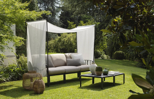 Модульная коллекция Komodo дополняется новым элементом Ombra, так что вы можете наслаждаться удовольствием от пребывания на открытом воздухе и общения, в защищенном месте от солнца. Широкая сетка балдахина (ткань Velo) обеспечивает вентиляцию, создавая затененное пространство, но не задерживает воду.