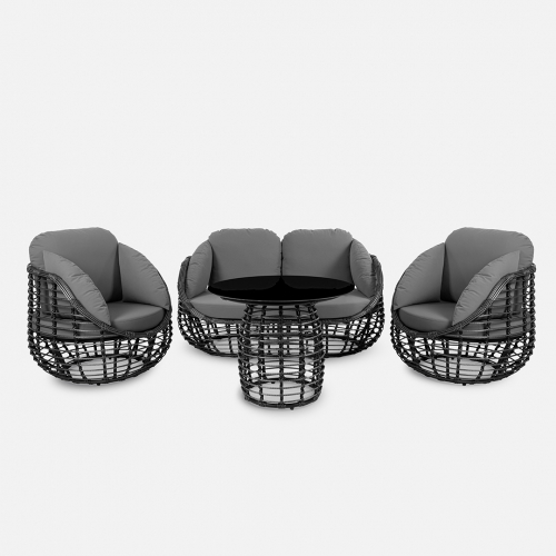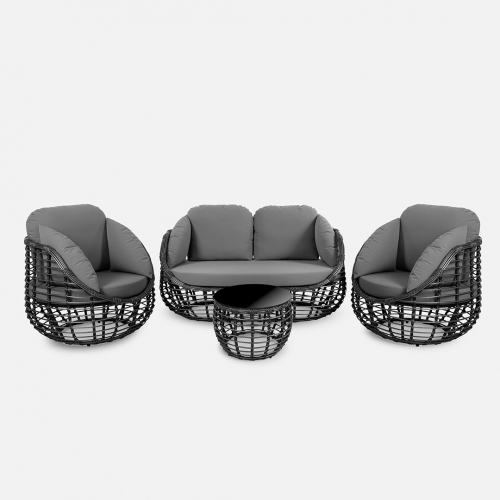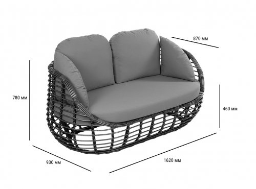 Цена на сайте указана за модель с плетением в цвете Черный металлик и обивкой подушек из ткани Jamaica Grey. Для уточнения всех возможных вариантов материала и цвета данного изделия обращайтесь к нашим менеджерам.