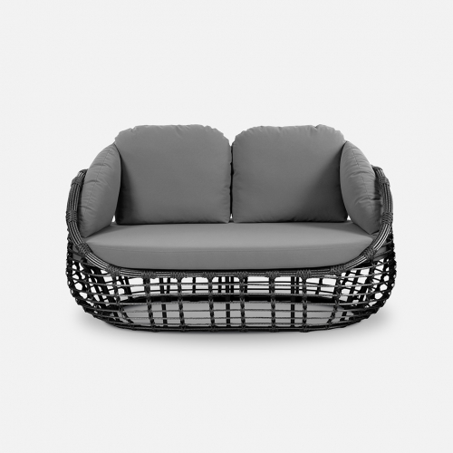 Эргономика дивана обеспечивает комфорт: спинка и подлокотники образуют единую чашу, мягко поддерживающую корпус. Материалы подобраны для долговечности: ротанг не выцветает на солнце, а каркас с порошковой окраской защищен от коррозии. Модель органично вписывается в частные террасы, зоны у бассейна и коммерческие пространства. Преимущества коллекции: глубокая посадка с полной поддержкой спины, устойчивость к влаге и ультрафиолету, простой уход без специальных средств.