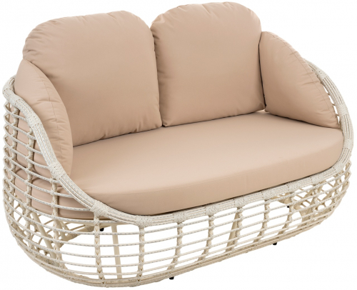 Эргономика дивана обеспечивает комфорт: спинка и подлокотники образуют единую чашу, мягко поддерживающую корпус. Материалы подобраны для долговечности: ротанг не выцветает на солнце, а каркас с порошковой окраской защищен от коррозии. Модель органично вписывается в частные террасы, зоны у бассейна и коммерческие пространства. Преимущества коллекции: глубокая посадка с полной поддержкой спины, устойчивость к влаге и ультрафиолету, простой уход без специальных средств.