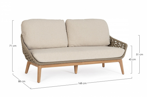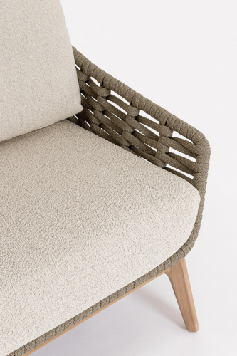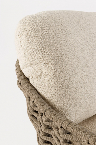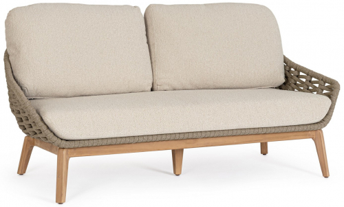 Двухместный диван Tamires - идеальное сочетание прочной конструкции, натуральных материалов и уникальной текстуры плетения, создающей ощущение роскоши и тепла в вашем пространстве. Ножки из тика придают модели теплоту и естественную элегантность, гармонично сочетаясь с металлическим каркасом. Спинка и сиденье оформлены плетением из роупа, а мягкие подушки с эффектом букле беспечивают расслабленную и уютную посадку.