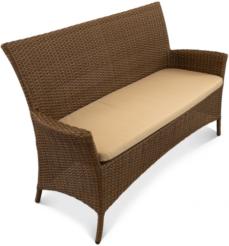 Диван Kipr - это гармония современного дизайна и коммерческой надежности. Модель построена на прочном цельносварном алюминиевом каркасе со стойкой порошковой окраской, который не боится коррозии и деформации. Декоративное плетение из искусственного ротанга неуязвимо для влаги, ультрафиолета и перепадов температур.