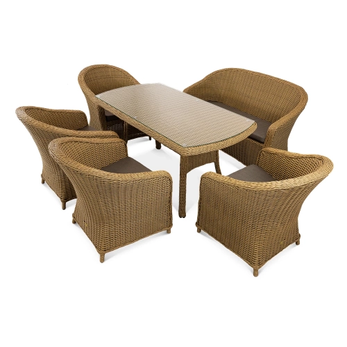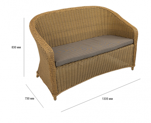 Диван Primo объединяет в себе утонченность и практичность в каждой детали. Его прочность начинается с цельносварного алюминиевого каркаса и порошковым напылением, исключающим риск коррозии и деформации. Материал отделки - искусственный ротанг, который не выцветает на солнце, не боится дождя и перепадов температур.