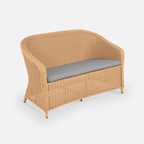 Диван Grand Primo объединяет в себе утонченность и практичность в каждой детали. Его прочность начинается с цельносварного алюминиевого каркаса и порошковым напылением, исключающим риск коррозии и деформации. Материал отделки - искусственный ротанг, который не выцветает на солнце, не боится дождя и перепадов температур.