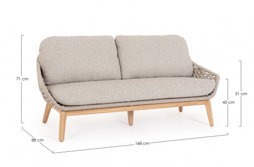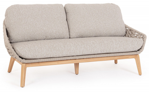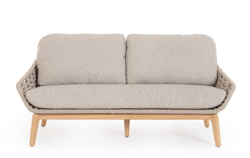 Двухместный диван Tamires на деревянных ножках и с плетенным корпусом является превосходной моделью для обустройства лаунж зон на летних площадках разнообразных назначений. Высококлассные материалы, гармоничное сочетание мягких и комфортных подушек, плетения и деревянных ножек придают изделию необычайно привлекательный внешний вид.