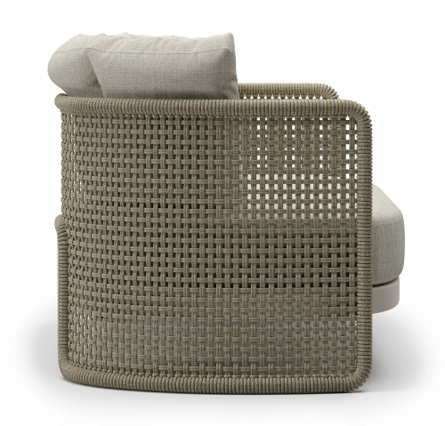 Коллекция Miura для отдыха на открытом воздухе - это приглашение к комфорту и элегантности. Мягкие, объемные сиденья привлекают внимание своей плетеной оболочкой, отличительной чертой, достигнутой за счет использования акриловых шнуров разного диаметра. Это плетение не только придает уникальный внешний вид, но и добавляет привлекательные тактильные ощущения. Miura предлагает широкий ассортимент элементов для уличной среды, гарантируя решения для различных потребностей. От предметов мебели для отдыха, которые приглашают расслабиться и комфортно провести время, до обеденных наборов, которые сочетают стиль и функциональность для дружеских встреч, вплоть до шезлонгов, каждый элемент разработан, чтобы придать характер окружающей среде.
