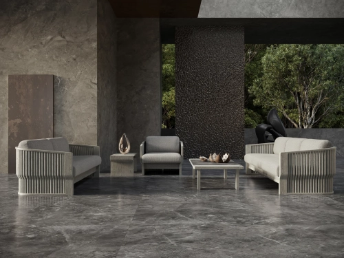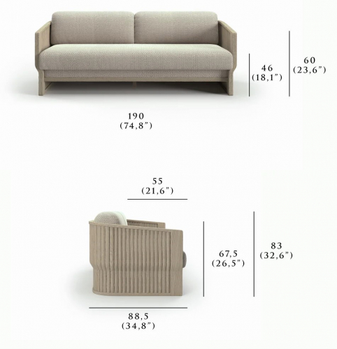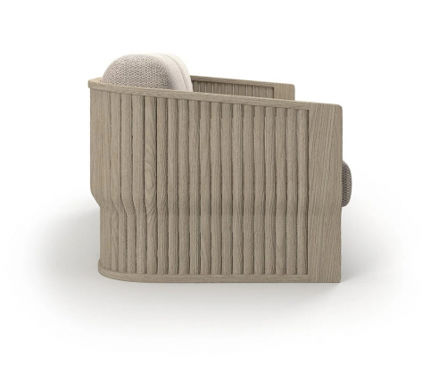 Двухместный диван Elythia объединяет мягкие линии и тактильную текстуру натурального тика с изящными деталями из вручную сплетеной акриловой веревки (роуп). Поверхности с имитацией камня создают визуальный контраст и ощущение естественного покоя, а мягкие линии сидений и спинок обеспечивают комфорт и уют в любой зоне отдыха: от веранды до открытой террасы.