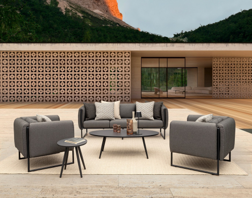 Уличный трехместный диван Pixel идеально подходит для обстановки лаунж зон на террасах, летних площадок, зон возле бассейна.