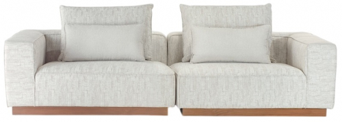 Диван Don - это универсальный модульный комплект мебели для гостиной, сочетающий максимальный комфорт и неподвластный времени дизайн. Он состоит из двух диванных секций. Сочетание прочного алюминиевого каркаса с элегантными деталями из тика обеспечивает стильный внешний вид и высокую прочность. Подушки наполнены быстросохнущим пеноматериалом Fast Dry Foam и обтянуты водоотталкивающей и простой в уходе олефиновой тканью - идеально для использования на улице круглый год.