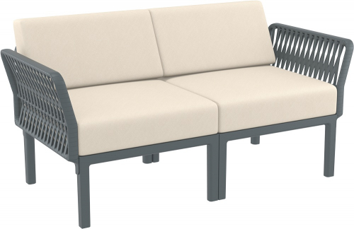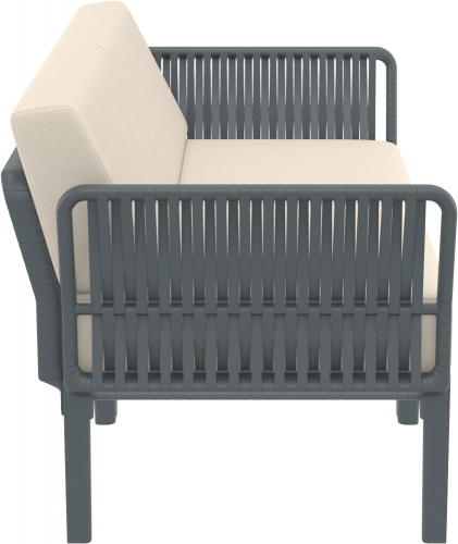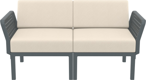 Диван Portofino Lounge от турецкой фабрики Siesta Contract представляет собой стильное и надежное решение для уличного использования в сферах HoReCa и Contract. Выполненный из высококачественного полипропилена, армированного стекловолокном, диван отличается исключительной прочностью и устойчивостью к воздействию внешней среды. Благодаря новейшим технологиям формования пластмасс под давлением, материал дивана устойчив к выцветанию и деформации, а нескользящие ножки обеспечивают безопасность и стабильность как внутри помещений, так и на улице. Особый акцент сделан на обволакивающей спинке, плавно переходящей в подлокотники, с 3D-эффектом плетения из плоского роупа, что придает дивану современный вид и визуально напоминает натуральное плетение, сохраняя при этом преимущества пластика.