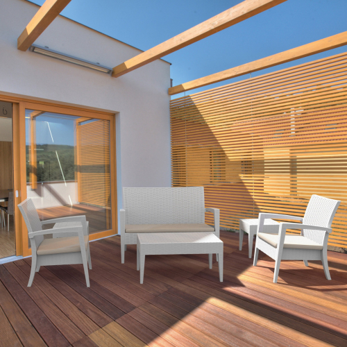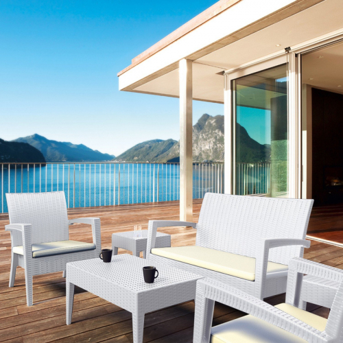 Пластиковый плетеный диван Miami Lounge изготовлен из прочного погодостойкого пластика, армированного стекловолокном. Пластиковые диваны серии Miami Lounge с имитацией плетения натурального ротанга станут отличным выбором для обстановки лаунж-зон различных заведений. Благодаря использованию высококачественных материалов они долгое время не теряют своего привлекательного внешнего вида, даже несмотря на активную эксплуатацию. Благодаря отсутствию металлического каркаса и устойчивости к ультрафиолетовому воздействию плетеные диваны из пластика Miami Lounge можно использовать в том числе и на открытых площадках.