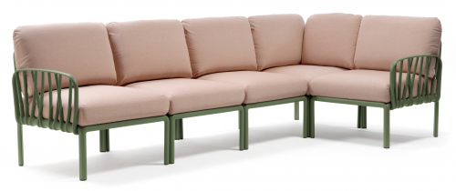 Модули Komodo выполнены из стеклопластика, имеют складные спинки и боковины, съемные подушки, благодаря чему можно составить диван любой длины, превратить отдельные модули в столики или пуфы.