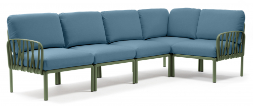 Модули Komodo выполнены из стеклопластика, имеют складные спинки и боковины, съемные подушки, благодаря чему можно составить диван любой длины, превратить отдельные модули в столики или пуфы.