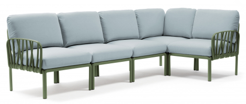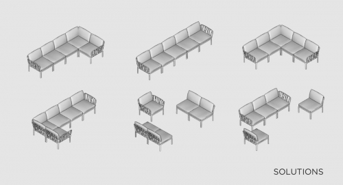 Модули Komodo выполнены из стеклопластика, имеют складные спинки и боковины, съемные подушки, благодаря чему можно составить диван любой длины, превратить отдельные модули в столики или пуфы.