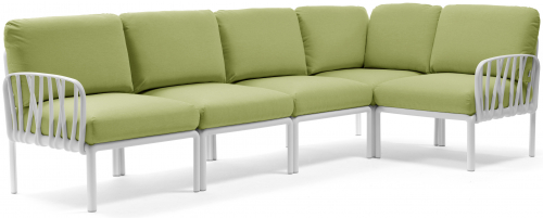 Модули Komodo выполнены из стеклопластика, имеют складные спинки и боковины, съемные подушки, благодаря чему можно составить диван любой длины, превратить отдельные модули в столики или пуфы.