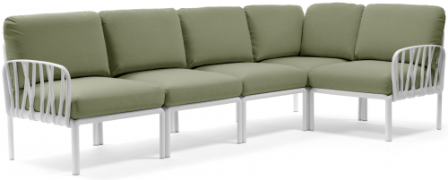 Модули Komodo выполнены из стеклопластика, имеют складные спинки и боковины, съемные подушки, благодаря чему можно составить диван любой длины, превратить отдельные модули в столики или пуфы.