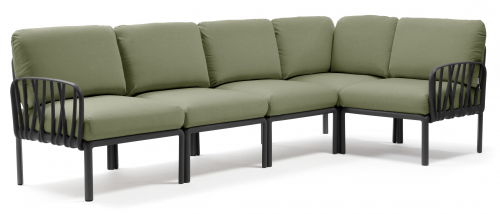 Модули Komodo выполнены из стеклопластика, имеют складные спинки и боковины, съемные подушки, благодаря чему можно составить диван любой длины, превратить отдельные модули в столики или пуфы.