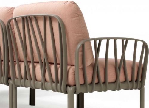 Модули Komodo выполнены из стеклопластика, имеют складные спинки и боковины, съемные подушки, благодаря чему можно составить диван любой длины, превратить отдельные модули в столики или пуфы.