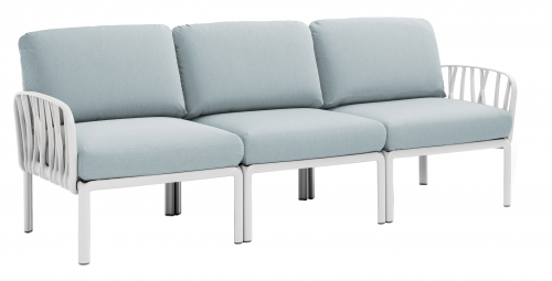 Модули Komodo выполнены из стеклопластика, имеют складные спинки и боковины, съемные подушки, благодаря чему можно составить диван любой длины, превратить отдельные модули в столики или пуфы.