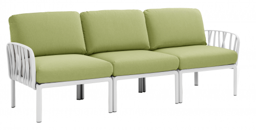 Модули Komodo выполнены из стеклопластика, имеют складные спинки и боковины, съемные подушки, благодаря чему можно составить диван любой длины, превратить отдельные модули в столики или пуфы.