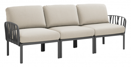 Модули Komodo выполнены из стеклопластика, имеют складные спинки и боковины, съемные подушки, благодаря чему можно составить диван любой длины, превратить отдельные модули в столики или пуфы.