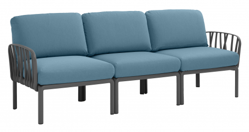 Модули Komodo выполнены из стеклопластика, имеют складные спинки и боковины, съемные подушки, благодаря чему можно составить диван любой длины, превратить отдельные модули в столики или пуфы.