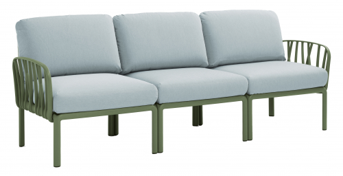 Модули Komodo выполнены из стеклопластика, имеют складные спинки и боковины, съемные подушки, благодаря чему можно составить диван любой длины, превратить отдельные модули в столики или пуфы.