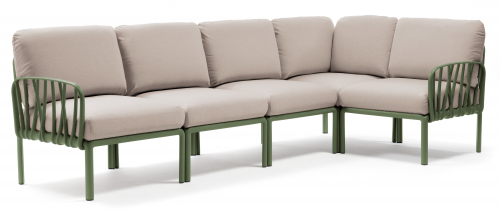 Модули Komodo выполнены из стеклопластика, имеют складные спинки и боковины, съемные подушки, благодаря чему можно составить диван любой длины, превратить отдельные модули в столики или пуфы.