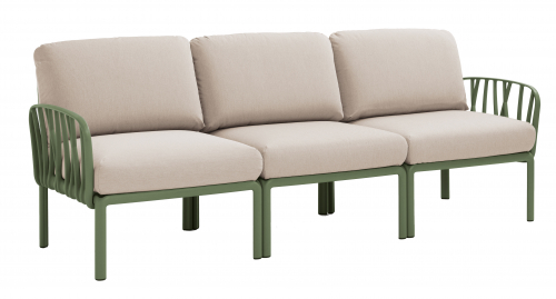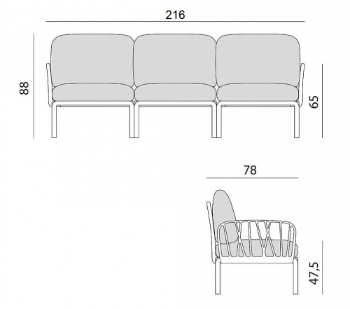Модули Komodo выполнены из стеклопластика, имеют складные спинки и боковины, съемные подушки, благодаря чему можно составить диван любой длины, превратить отдельные модули в столики или пуфы.