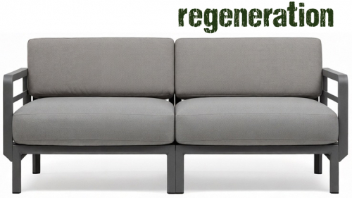 Изысканный, эстетически привлекательный дизайн: чистые и сбалансированные линии развиваются горизонтально, создавая ощущение глубины и длины; структура из переработанного пластика является цельной и прочной, но визуально облегченной за счет модульных треугольных секций и закругленных деталей. Большие объемы, удобное, глубокое сиденье и гибкая, гармоничная модульность.