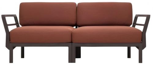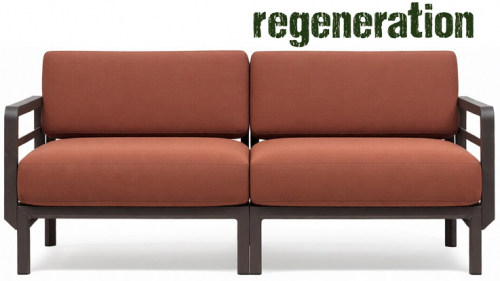 Изысканный, эстетически привлекательный дизайн: чистые и сбалансированные линии развиваются горизонтально, создавая ощущение глубины и длины; структура из переработанного пластика является цельной и прочной, но визуально облегченной за счет модульных треугольных секций и закругленных деталей. Большие объемы, удобное, глубокое сиденье и гибкая, гармоничная модульность.