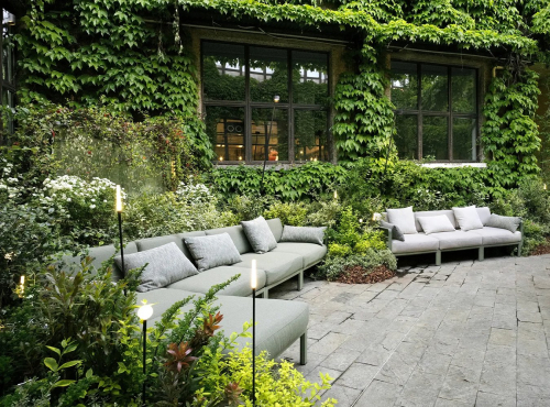 Мягкие самоцентрирующиеся подушки выполнены из элегантных текстур и тканей, частично регенерированных, и отличаются высоким техническим качеством: они выдерживают пребывание на открытом воздухе, чехлы можно снимать и стирать, они доступны в четырех очаровательных цветах. В сочетании с декоративными подушками с немного другим рисунком, но идеально подходящими оттенками они придают дивану индивидуальность и мягкость. Коллекция Maximo также включает в себя журнальный столик и держатель для предметов, который можно прикрепить к сиденью, оба выполнены из переработанного пластика.