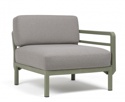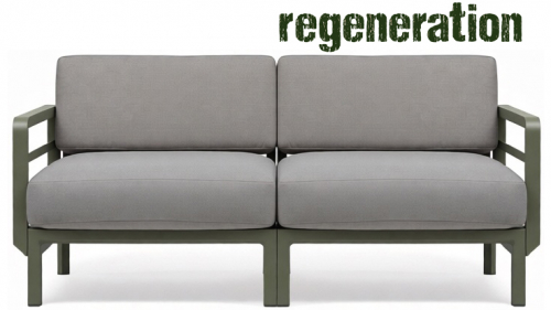 Изысканный, эстетически привлекательный дизайн: чистые и сбалансированные линии развиваются горизонтально, создавая ощущение глубины и длины; структура из переработанного пластика является цельной и прочной, но визуально облегченной за счет модульных треугольных секций и закругленных деталей. Большие объемы, удобное, глубокое сиденье и гибкая, гармоничная модульность.