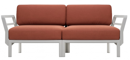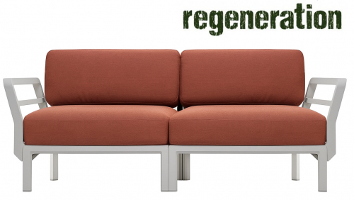 Изысканный, эстетически привлекательный дизайн: чистые и сбалансированные линии развиваются горизонтально, создавая ощущение глубины и длины; структура из переработанного пластика является цельной и прочной, но визуально облегченной за счет модульных треугольных секций и закругленных деталей. Большие объемы, удобное, глубокое сиденье и гибкая, гармоничная модульность.