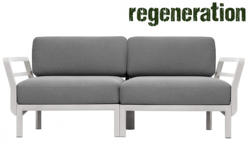 Изысканный, эстетически привлекательный дизайн: чистые и сбалансированные линии развиваются горизонтально, создавая ощущение глубины и длины; структура из переработанного пластика является цельной и прочной, но визуально облегченной за счет модульных треугольных секций и закругленных деталей. Большие объемы, удобное, глубокое сиденье и гибкая, гармоничная модульность.