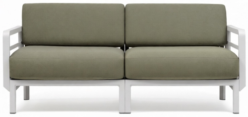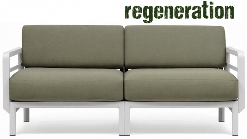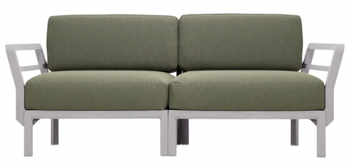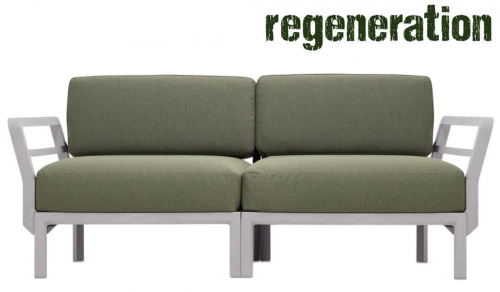 Изысканный, эстетически привлекательный дизайн: чистые и сбалансированные линии развиваются горизонтально, создавая ощущение глубины и длины; структура из переработанного пластика является цельной и прочной, но визуально облегченной за счет модульных треугольных секций и закругленных деталей. Большие объемы, удобное, глубокое сиденье и гибкая, гармоничная модульность.