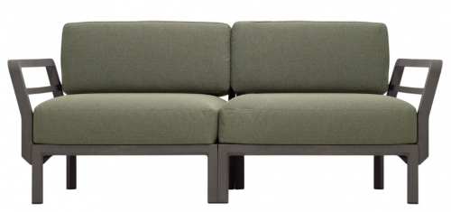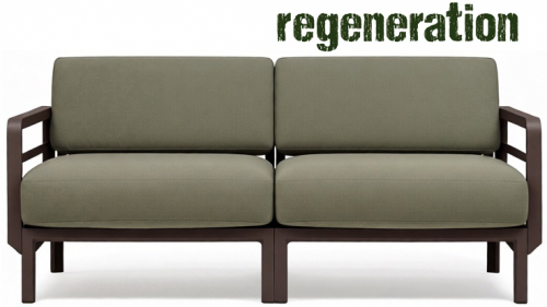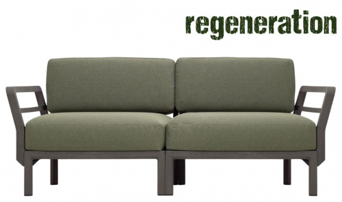 Изысканный, эстетически привлекательный дизайн: чистые и сбалансированные линии развиваются горизонтально, создавая ощущение глубины и длины; структура из переработанного пластика является цельной и прочной, но визуально облегченной за счет модульных треугольных секций и закругленных деталей. Большие объемы, удобное, глубокое сиденье и гибкая, гармоничная модульность.