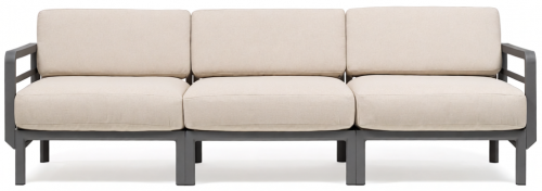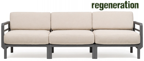 Изысканный, эстетически привлекательный дизайн: чистые и сбалансированные линии развиваются горизонтально, создавая ощущение глубины и длины; структура из переработанного пластика является цельной и прочной, но визуально облегченной за счет модульных треугольных секций и закругленных деталей. Большие объемы, удобное, глубокое сиденье и гибкая, гармоничная модульность.