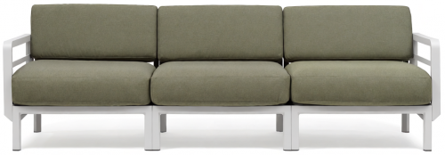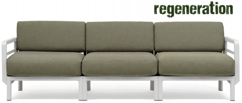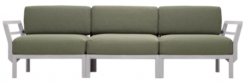 Изысканный, эстетически привлекательный дизайн: чистые и сбалансированные линии развиваются горизонтально, создавая ощущение глубины и длины; структура из переработанного пластика является цельной и прочной, но визуально облегченной за счет модульных треугольных секций и закругленных деталей. Большие объемы, удобное, глубокое сиденье и гибкая, гармоничная модульность.