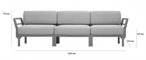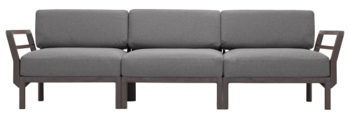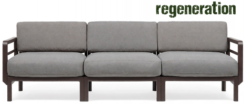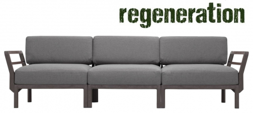 Изысканный, эстетически привлекательный дизайн: чистые и сбалансированные линии развиваются горизонтально, создавая ощущение глубины и длины; структура из переработанного пластика является цельной и прочной, но визуально облегченной за счет модульных треугольных секций и закругленных деталей. Большие объемы, удобное, глубокое сиденье и гибкая, гармоничная модульность.